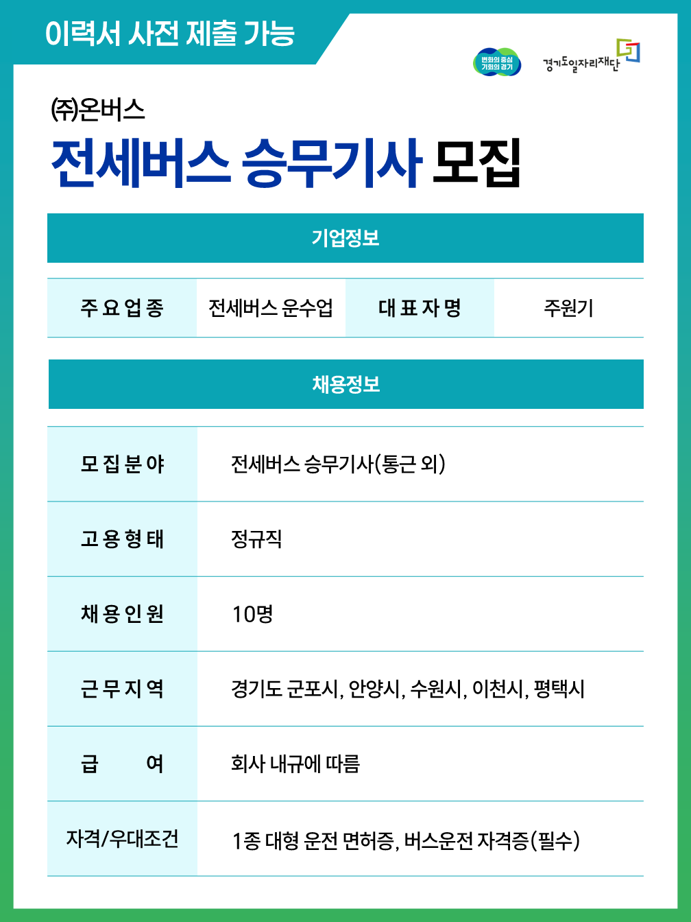 [(주)온버스]전세버스 승무기사 채용